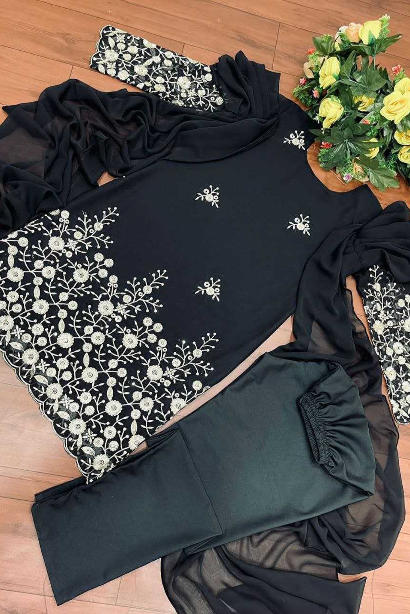 Top Fabric:- Fox Georgette With Heavy 5mm Siqwons Embroidery Work With *Fancy Style Sleeves* With Cut-Work With Full-Stitch